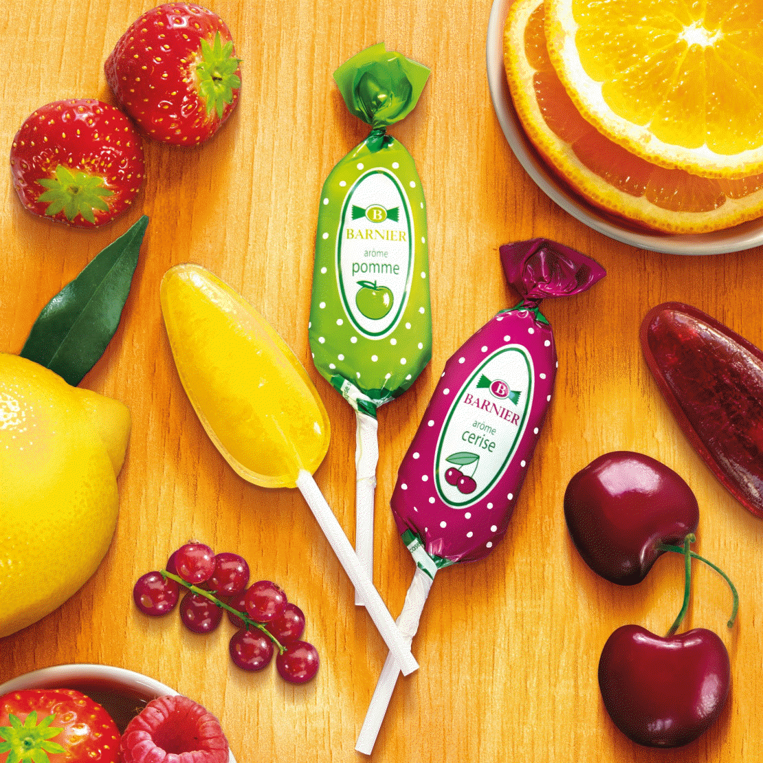 Made in Normandy by master confectioners, Barnier lollipops are the epitomy of the French tradition of candy-making. With all-natural colours and natural or nature-identical flavours, they deliver a superior all-taste experience to the most discerning consumers around the World (in Europe, Asia, the Middle-East and America).