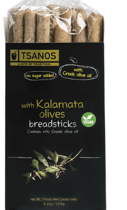 Breadsticks with Kalamata olives 120g with 100% Greek olive oil and no added sugar.