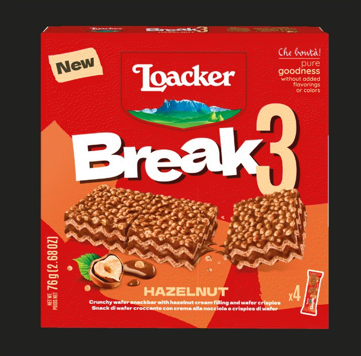 Loacker meets this need with Break3, the original snack that easily breaks into 3 scrumptious little cubes. Enjoy it whole, a bit at a time, or share it with pleasure.