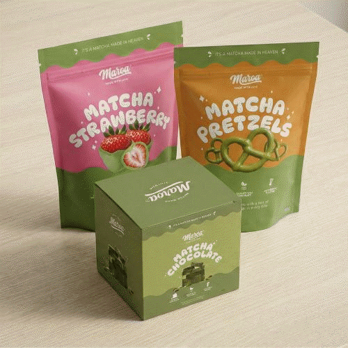 MAROA is a modern matcha inspired brand combining familiar indulgence with refined flavor profiles. The range focuses on balance, quality ingredients, and strong visual appeal.
