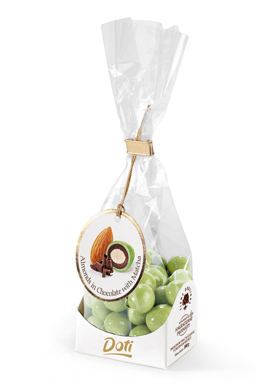 Crispy almonds, first coated in rich dark chocolate and then covered in creamy white chocolate infused with Japanese matcha – a flavor combination that's gaining popularity fast. The subtle, earthy notes of matcha perfectly balance the sweetness of the chocolate, creating a refined harmony that today’s conscious consumers truly appreciate.
