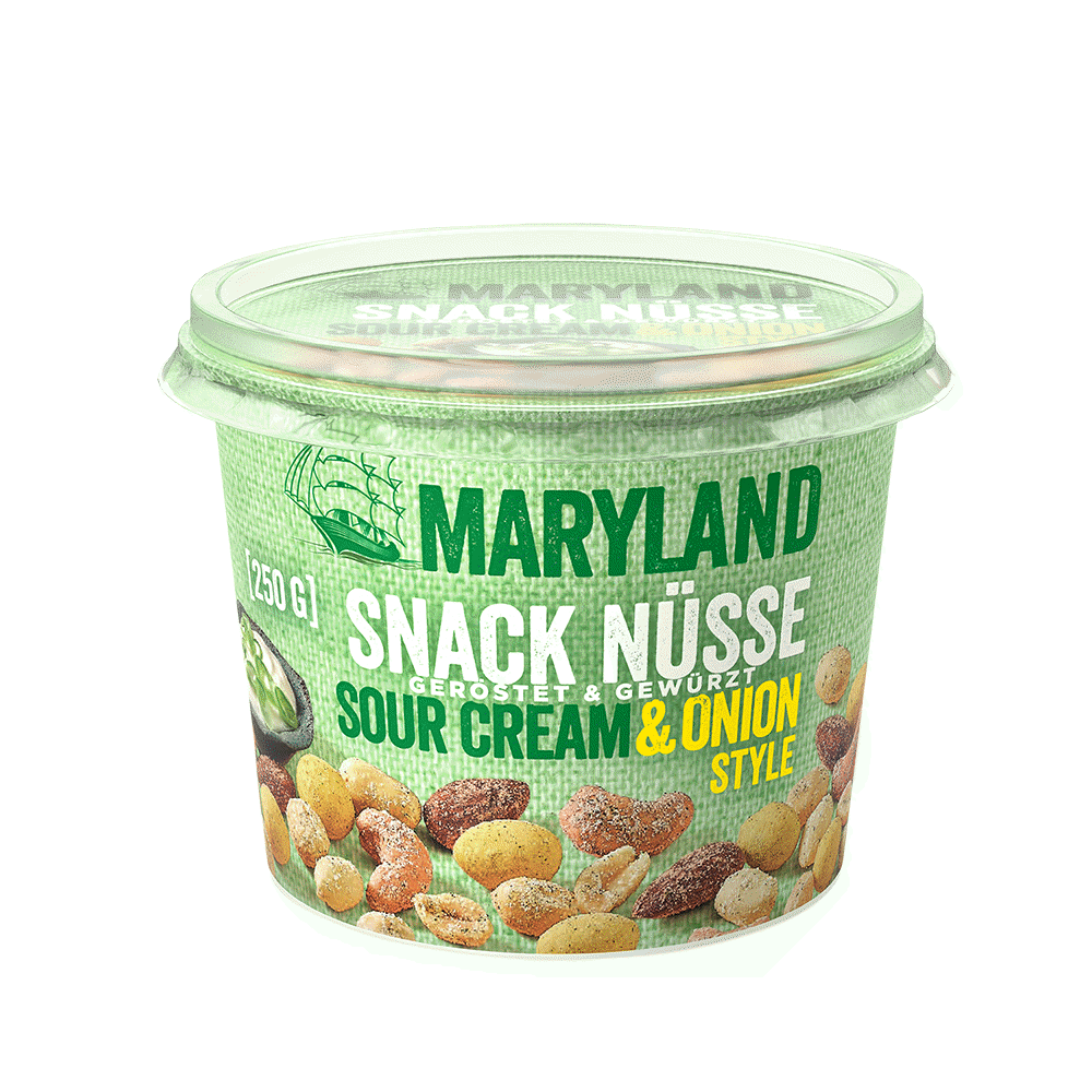 Savory snacks continue to be among the key growth drivers in the nut segment. Aromatic seasonings, in particular, are trending. With the Sour Cream & Onion Style Snack Nuts, MARYLAND is introducing one of the most popular flavours as a nut mix to the snack aisle starting in April. The mix combines creamy freshness with a savory onion note and peanuts coated in a crispy batter. This new variety expands the successful Snack Nuts range and offers additional sales potential for retail partners. The product will be available in a 250 g cup.